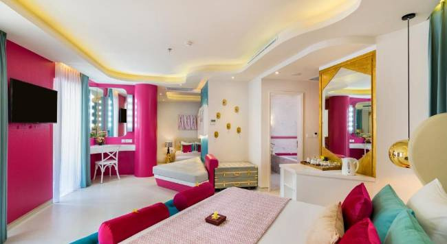 Dvoupokojový suite pro max. 6 osob má 85 m2 a nachází se v křídle Family Paradise. Z pokoje se vám naskytne výhled na oceán nebo do zahrady. K dispozici budete mít plně vybavenou koupelnu, TV/SAT, trezor, telefon, minibar, sada na přípravu kávy a čaje a vlastní balkon. Dále je součástí také individuálně řízená klimatizace.